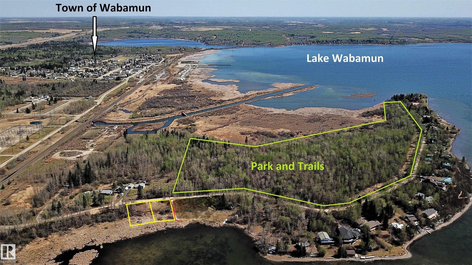 LAKEFRONT PROPERTY! Located @ Point Alison a unique GATED SUMMER VILLAGE with water on 3 sides, just 37 MINUTES FROM EDMONTON and walking distance into Wabamun. Home to an endless variety of birds and wildlife. This 100’ wide lot is READY FOR YOUR DREAM CABIN and years of enjoyment and yes you would OWN RIGHT UP TO THE WATER’S EDGE. West facing will CAPTURE ALL THE SUNSETS or stay up all night on the full moon. This QUIET BAY IS PROTECTED from winds and big storms on the lake perfect for a variety of docks and boats. WALKING TRAILS wind through the forest behind where you can see all that nature has to offer. YEAR ROUND USE and access on the lake just minutes from home! Power and Gas at property edge. Private water (well or cistern) and sewer tank to be added by purchaser. No time line restrictions on building and part time RV use allowed.
